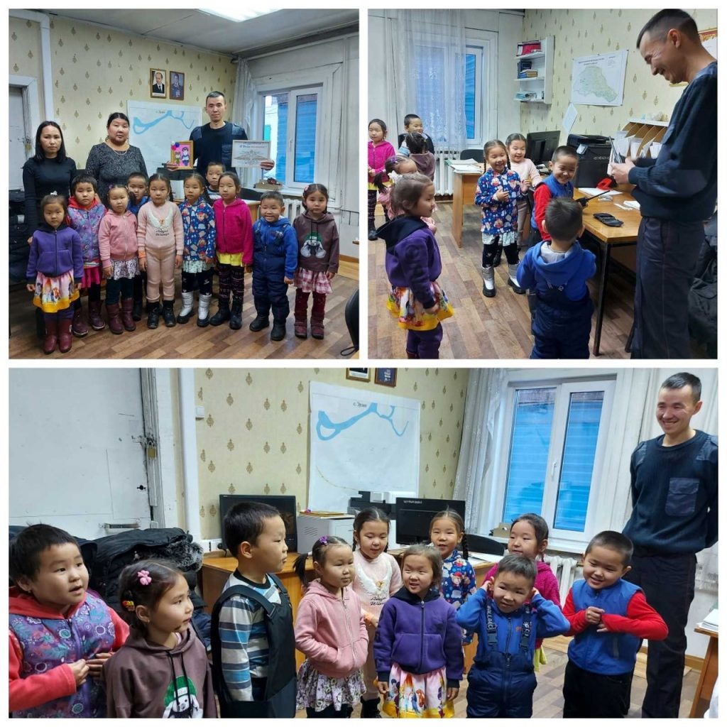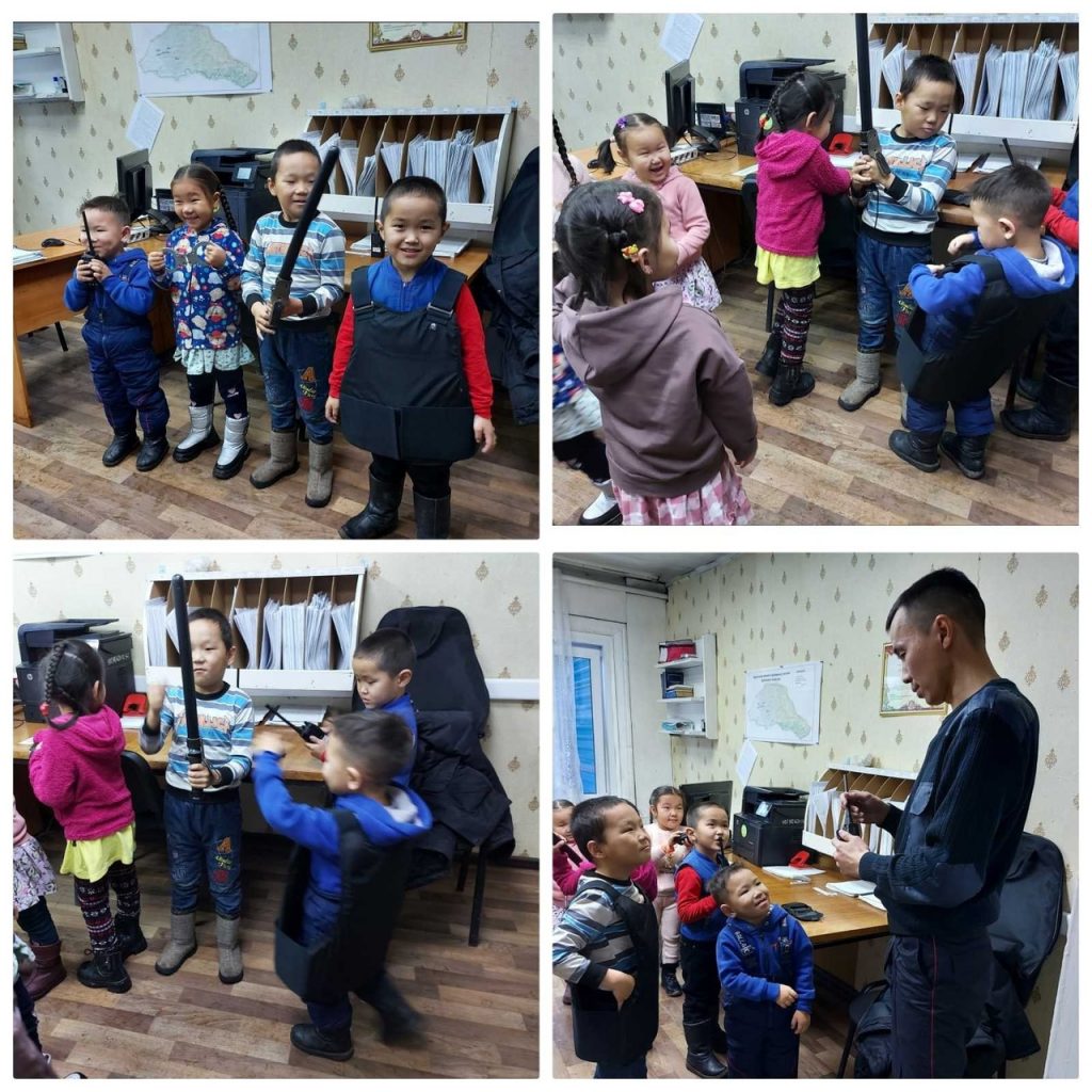 питатели старшей группы Кунужап М.Б. и Хулер А.К.организовали встречу с нашим участковым села Эдуардом Сайдашовичем. В своем рабочем кабинете детей он встретил с большим удовольствием. Ознакомил детей с различными службами полиции, уточнил, что работа полицейского — это охрана, защита людей, оказание помощи пострадавшим от поступков плохих людей. Встреча прошла на высоком уровне. Дети с большим интересом ознакомились с формой, и экипировкой . полицейского. Задавали много вопросов. Большинство детей говорили, что когда станут взрослыми обязательно будут полицейскими. Дети подарили на память участковому полицейскому поделку из бисера сделанной самими детьми. На прощанье дети обещали, что всегда будут хорошими гражданами своей страны.