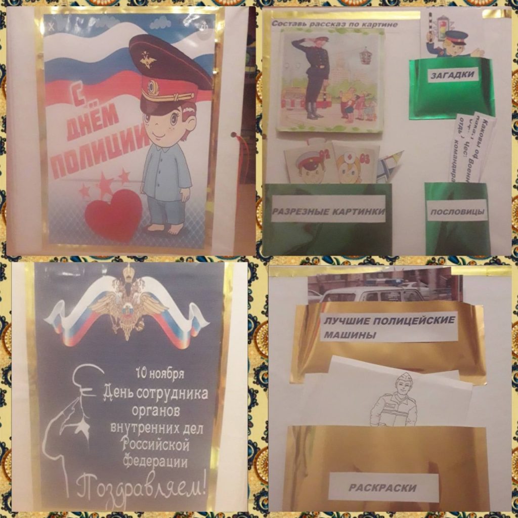 Полиция в Российской Федерации призвана защищать жизнь, здоровье, права и свободы всех людей нашей страны, то есть граждан, собственность, интрересы общества и государства от разных преступлений. Воспитатель младшей группы Баян М.С. изготовила лебпук » С днём Полиции» и подарила его детям средней группы, чтобы дети изучали материалы, собранные в лебпук и в дальнейшем использовали их для совместной и самостоятельной деятельности в группе.