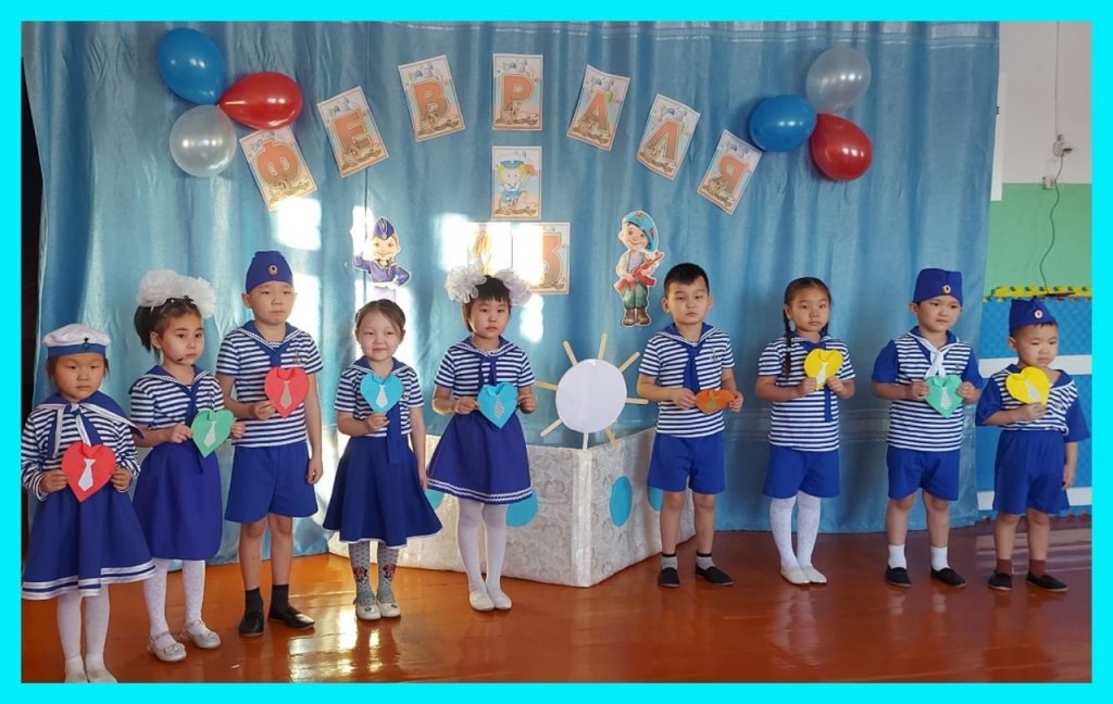 20.02.2023 г. С Днем защитника Отечества поздравляют всех пап и дедушек воспитанники старшей группы «Почемучки» и средней группы «Чыжыргана» МБДОУ Кызыл-Сылдысский летский сад»Челээш».