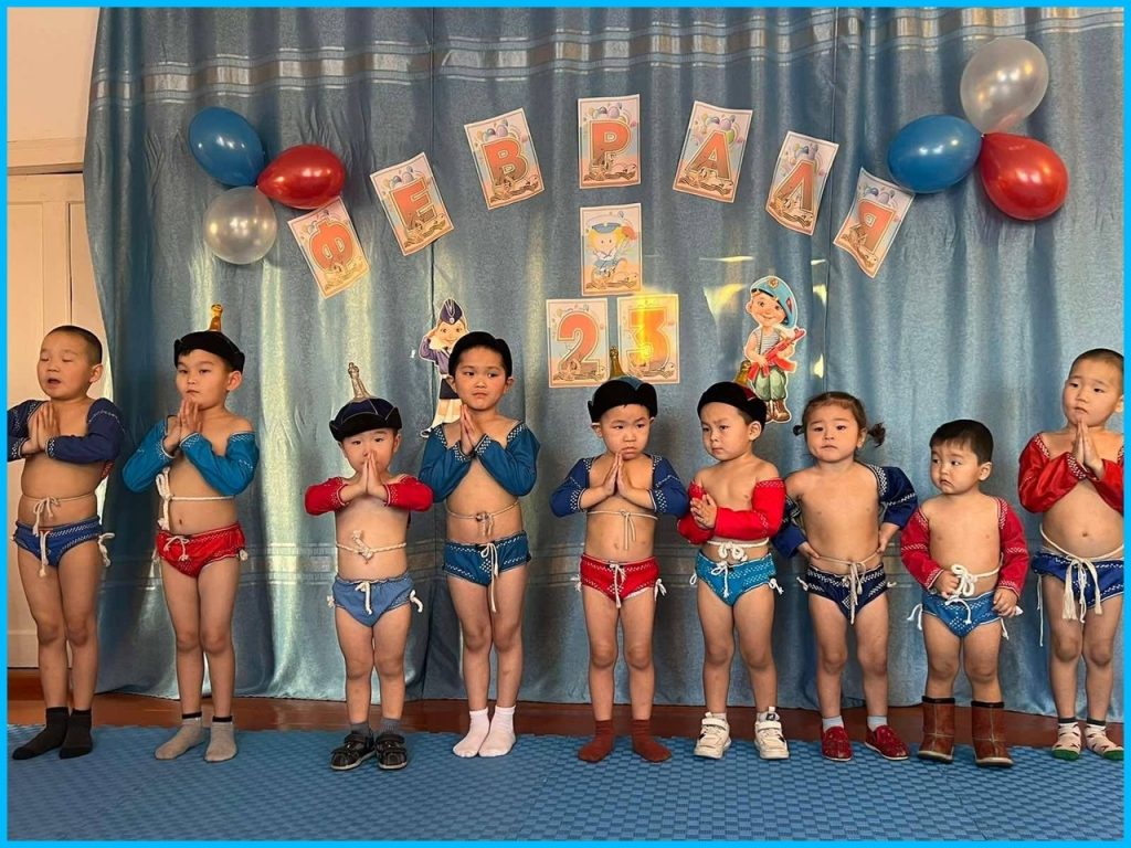 Также в этот день организовали в детском саду соревнование «Хуреш» среди мальчиков средней и старшей групп, где дети боролись за командную победу и показали свою ловкость, смелость.